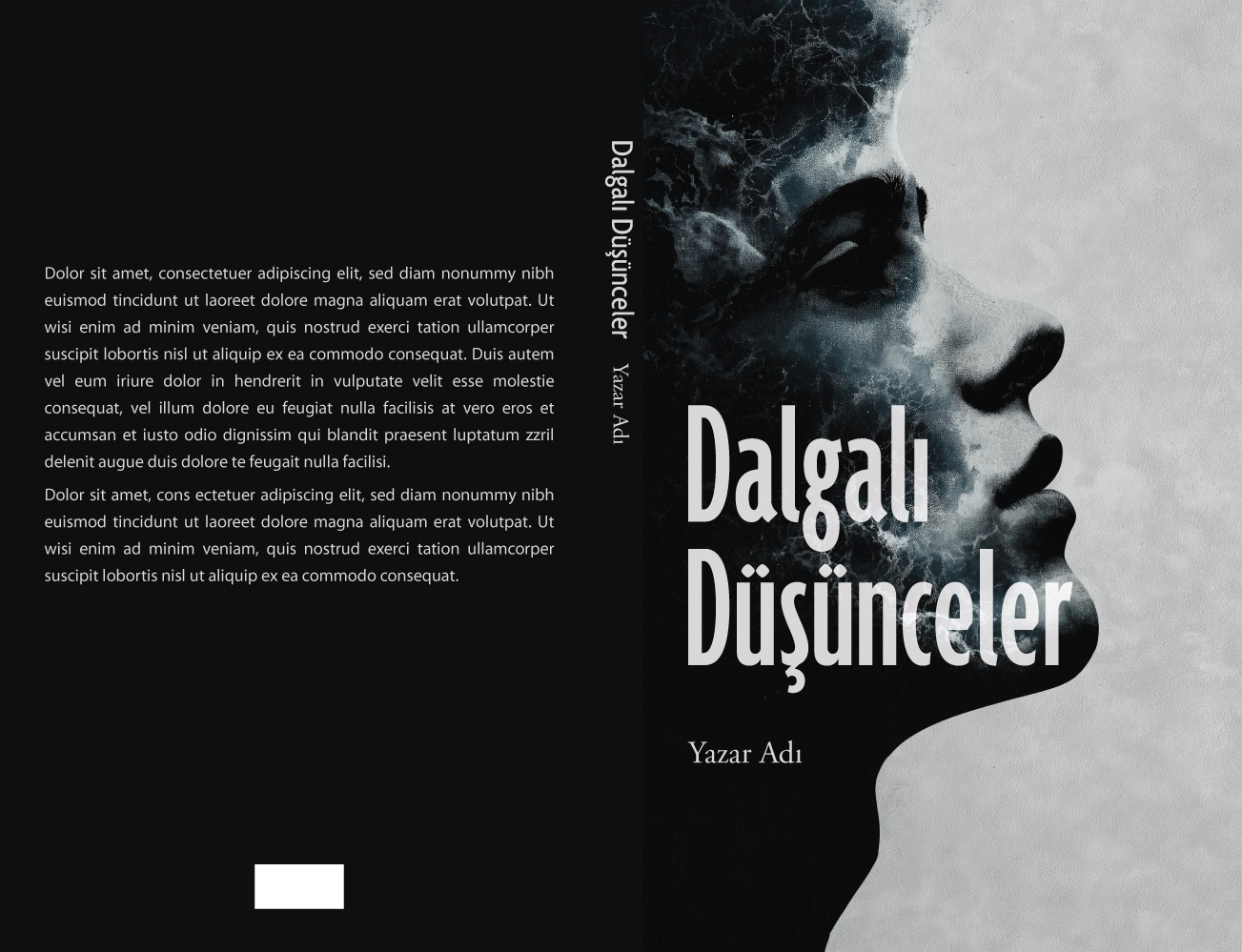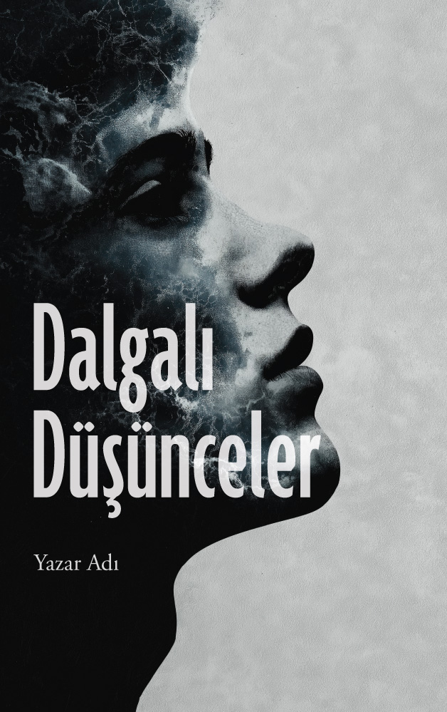 İnsan profili ile karanlık okyanus dalgalarının dramatik bir şekilde bütünleştiği bu sarsıcı kapak tasarımı, duygusal yoğunluğu ve içsel fırtınaları ustaca yansıtıyor. Siyah ve beyaz tonların yarattığı derinlik; psikoloji, dram, modern edebiyat, biyografi veya kişisel dönüşüm hikayeleri için çok güçlü ve karakteristik bir estetik sunuyor. Kitabınızın taşıdığı ağırlığı ve derinliği raflarda en iyi şekilde ifade edecek kusursuz bir görsel.