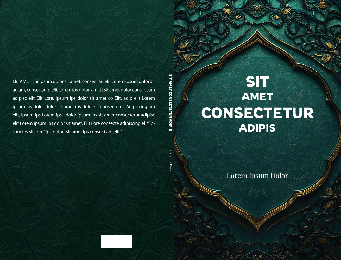 Lüks ve romantik bir estetikle bezenmiş bu kapak, dinî temaları ve geometrik desenleri harmanlar. Soyut bir tarzda akademik kitaplar için sofistike bir tasarım sunar.