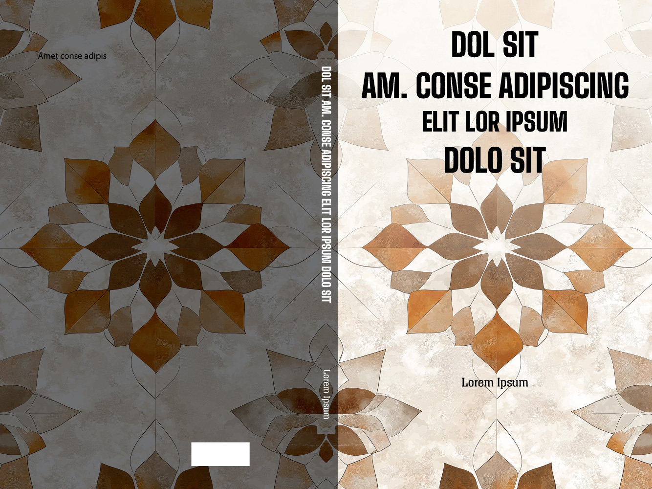 Geometrik desenlerin ve sade dokuların ön planda olduğu, akademik, dini ve sanatsal bir kapak tasarımı. Soyut öğelerle desteklenmiştir.