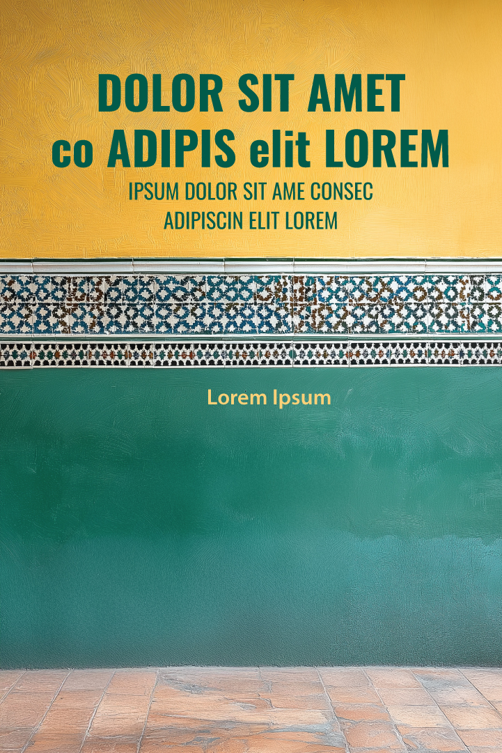 Geometrik desenlerle sade ve klasik bir yaklaşım sergileyen, dini ve sanatsal unsurların dengeli bir şekilde işlendiği akademik bir tasarım.