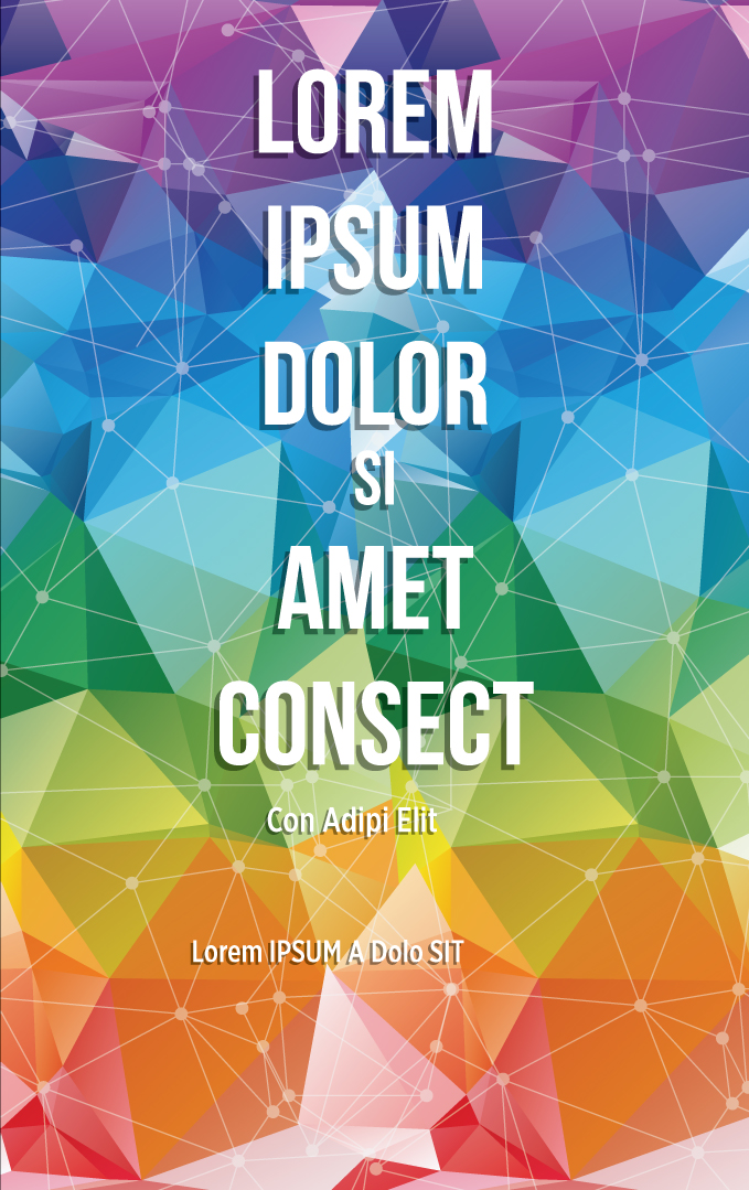Desen, geometrik, modern, renkli ve soyut öğelerin birleşiminden oluşan enerjik bir kapak tasarımı.