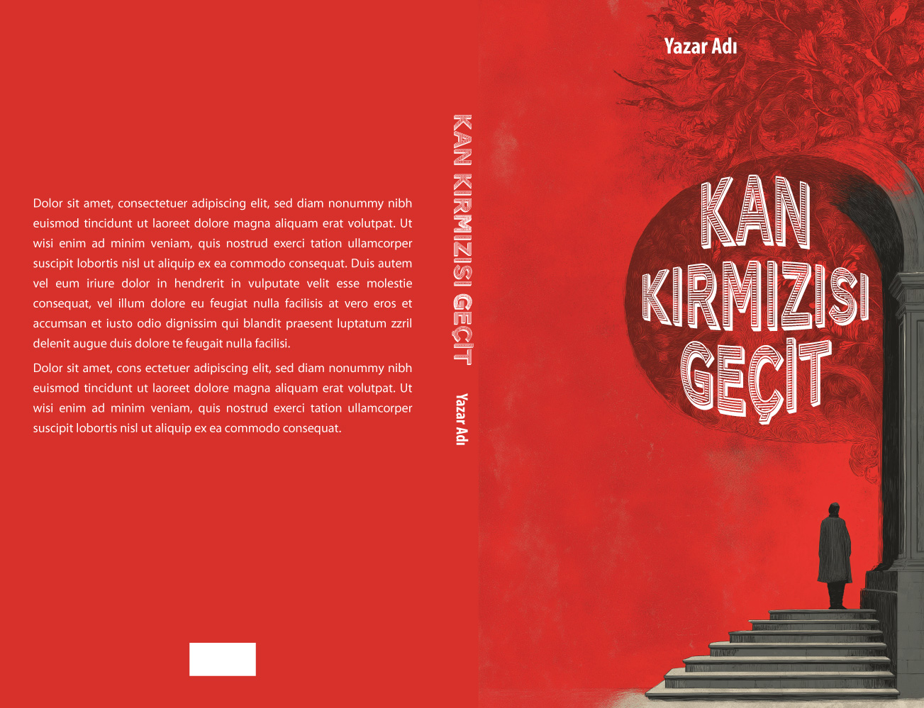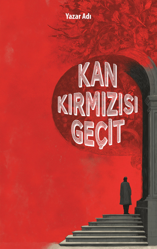 Kan kırmızısı çarpıcı bir arka plan ile klasik, gri bir taş merdiven ve kemerin buluştuğu bu sanatsal tasarım, gotik estetiği zirveye taşıyor. Kemerin içinden taşan devasa, detaylı ve organik/kök benzeri dokular, tasarıma sarsıcı ve fantastik bir gizem katıyor. Merdivenlerde bekleyen yalnız figür; gotik edebiyat, tarihi gerilim, felsefi kurgular, fantastik romanlar veya korku eserleri için okuyucuda anında merak uyandıracak destansı bir atmosfer sunuyor.