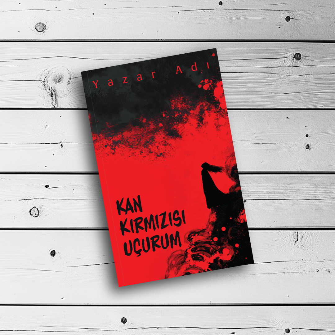Kan kırmızısı ve derin siyahın çarpıcı kontrastıyla oluşturulmuş bu dramatik hazır kitap kapağı tasarımı, karanlık bir uçurumun kenarında duran yalnız bir figürü resmediyor. Gökyüzündeki dumanlı ve sıçramalı dokular, kaosu, tehlikeyi ve yoğun duyguları kusursuz bir şekilde yansıtıyor. Psikolojik gerilim, korku, karanlık fantastik (dark fantasy), polisiye veya tutku dolu dramatik kurgular için biçilmiş kaftan olan bu tasarım, rafta anında dikkatleri üzerine çekecektir. Eserinizin taşıdığı gerilimi okuyucuya en güçlü şekilde aktarmak için kusursuz bir görsel.