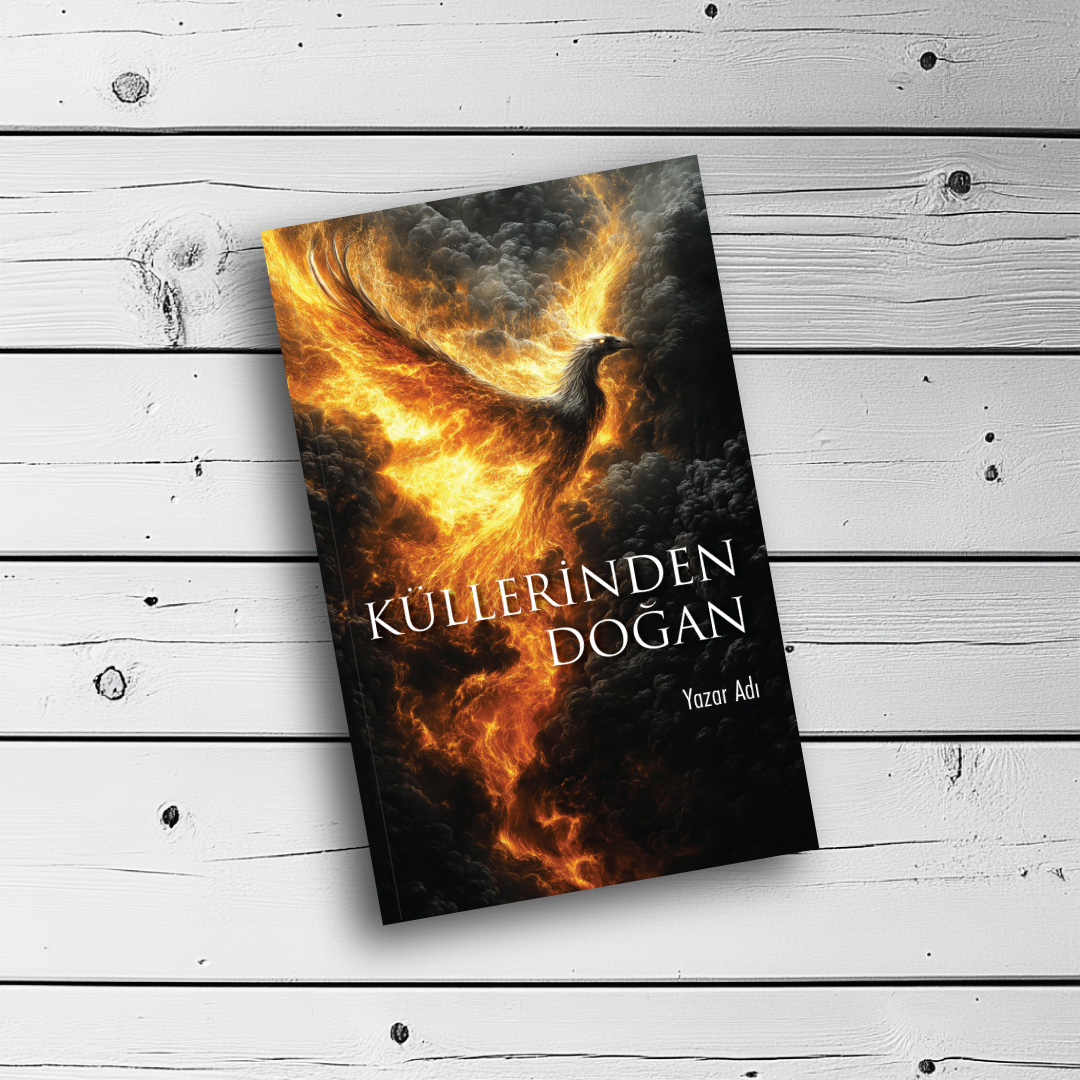 Koyu gri ve siyah kül bulutlarının arasından tüm ihtişamıyla yükselen, alev alev yanan bir anka kuşunun resmedildiği bu epik hazır kitap kapağı tasarımı, yeniden doğuş ve güç temalarını kusursuzca işliyor. Alevlerin yarattığı parlaklık ve dumanın karanlığı arasındaki çarpıcı kontrast; fantastik kurgu, mitoloji, epik fantastik, macera veya küllerinden doğma temalı dram eserleri için eşsiz bir görsel şölen sunuyor. Okuyucuyu kapağına baktığı an kendi yarattığınız efsanevi evrenin içine çekecek kadar güçlü ve sinematik.