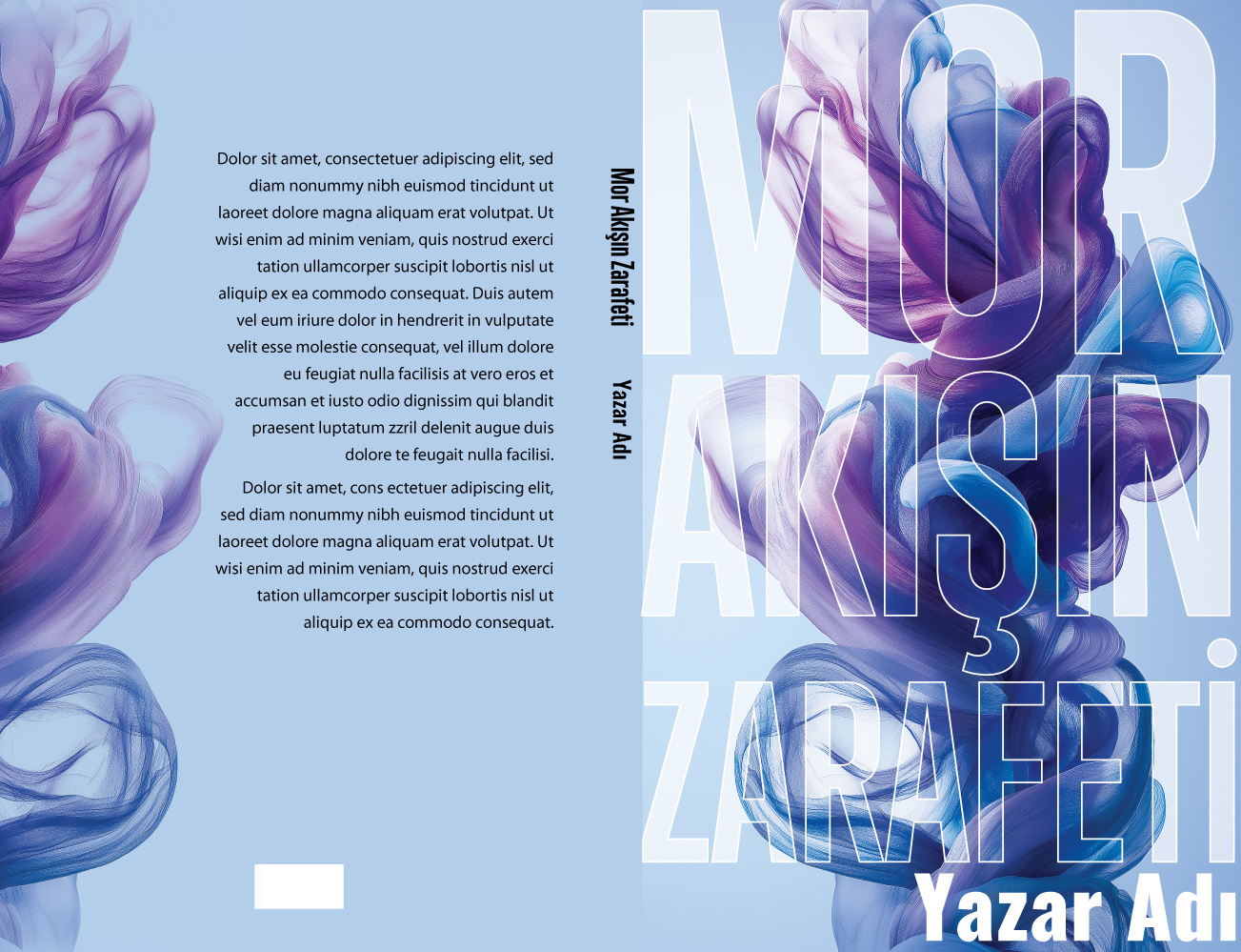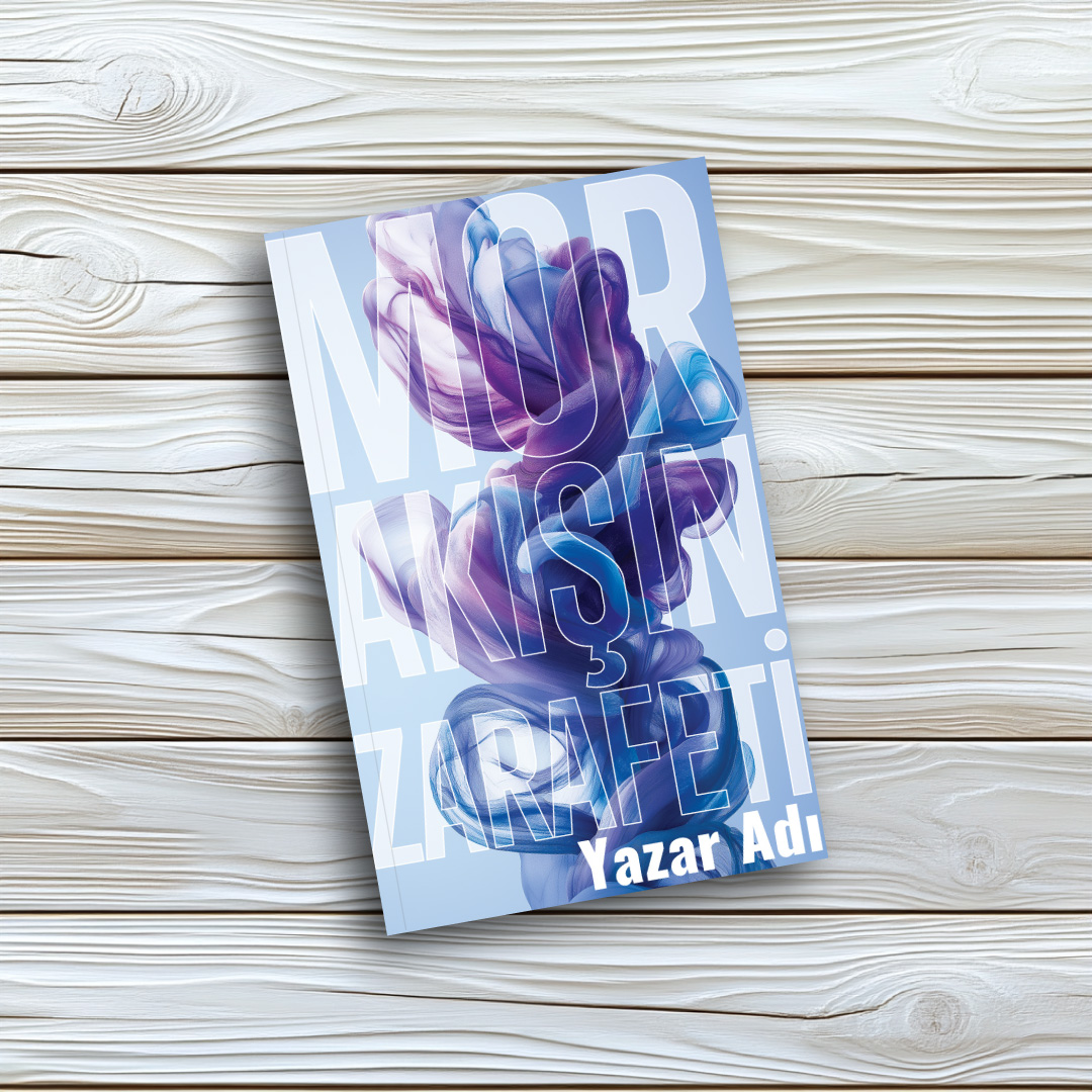 Açık mavi ve ferah bir arka plan üzerinde, sanki suyun içinde süzülüyormuş gibi zarifçe kıvrılan mor, lacivert ve mavi tonlarındaki şeffaf duman/kumaş formlarıyla tasarlanmış bu sanatsal kitap kapağı, zarafeti ön plana çıkarıyor. Üç boyutlu soyut dokuların yarattığı yumuşak geçişler; psikoloji, kişisel gelişim, modern edebiyat, şiir veya estetik odaklı eserler için son derece lüks ve modern bir görünüm sunar. Kitabınızın raflarda hem sakin hem de son derece şık ve profesyonel durmasını sağlayacaktır.