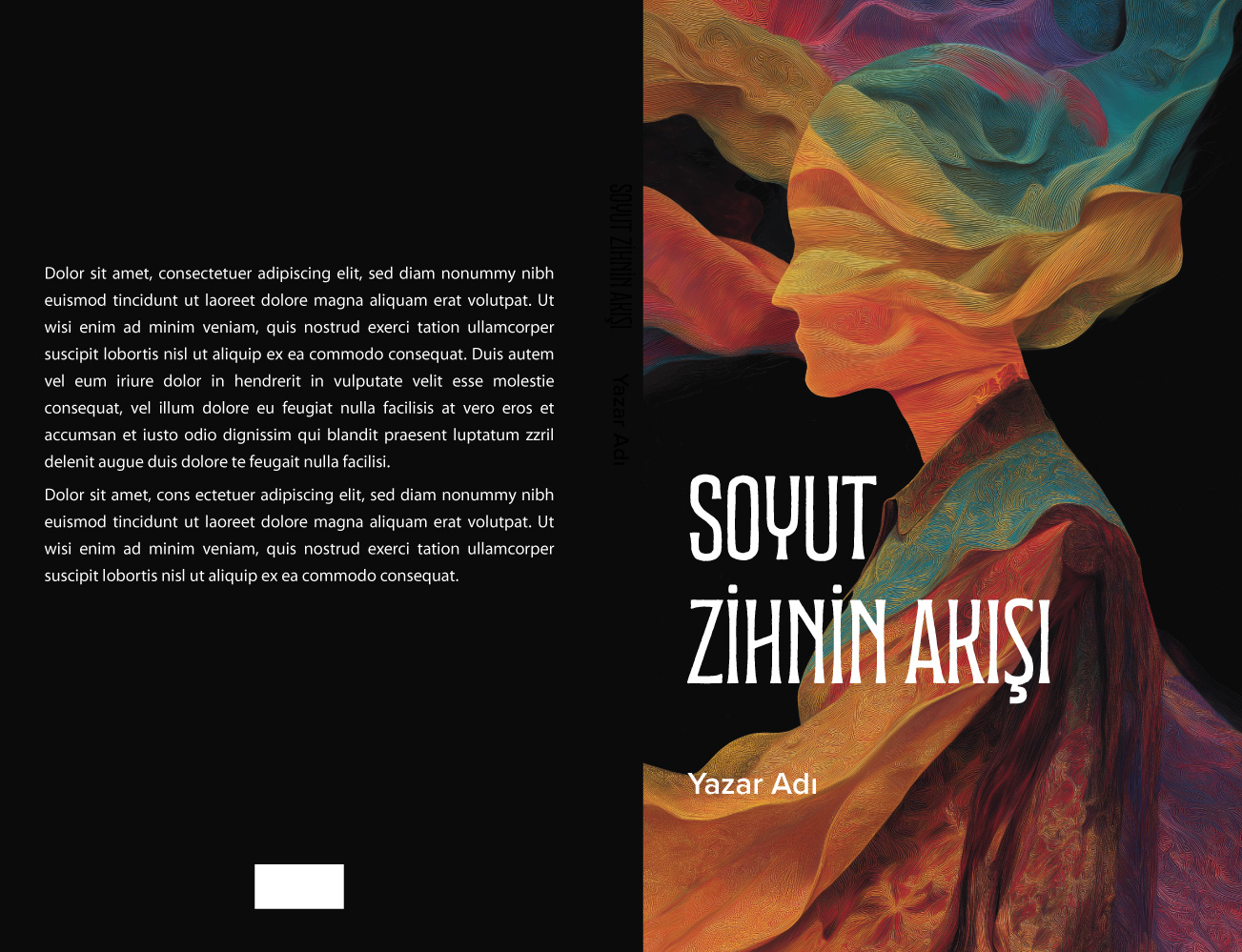 Bu etkileyici ve sanatsal kitap kapağı tasarımı, insan zihninin karmaşıklığını ve düşüncelerin akışını canlı renk dalgalarıyla görselleştiriyor. Sıcak ve soğuk renklerin büyüleyici uyumuyla oluşturulan bu soyut illüstrasyon, profil formunda zarif bir kadın silüetini merkezine alıyor. Modern edebiyat, psikoloji, felsefe, şiir veya sanatsal kurgu türündeki eserler için mükemmel bir seçim olan bu hazır kapak tasarımı, okuyucunun dikkatini anında çekecek güçlü bir görselliğe sahip.