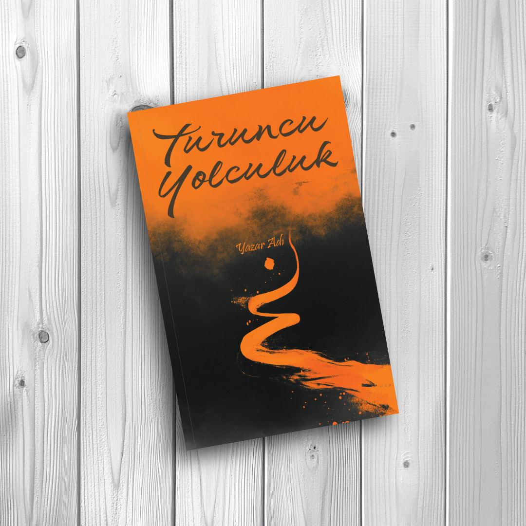 Siyah ve canlı turuncunun kusursuz geçişiyle tasarlanmış bu modern ve soyut hazır kitap kapağı, merkezindeki kıvrımlı ve enerjik fırça darbesiyle öne çıkıyor. Siyah zemin üzerindeki bu akışkan leke, bir yolu, zihinsel bir süreci veya dinamik bir akışı andırarak tasarıma hareket katıyor. Minimalist ve sanatsal bir estetiğe sahip olan bu kapak; modern edebiyat, kişisel gelişim, iş dünyası, deneme, şiir veya soyut felsefi eserler için son derece uygundur. Tipografik müdahalelere geniş alan tanıyan yapısıyla, profesyonel ve yenilikçi bir duruş sergiler.