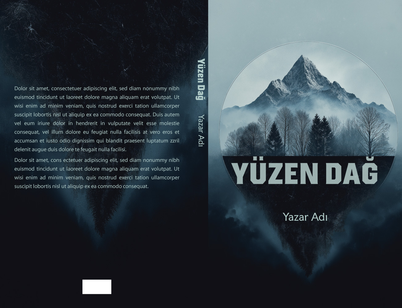 Sürreal bir “yüzen ada” konseptini dairesel bir çerçeve içinde sunan bu sanatsal tasarım, üstte sisli ve karlı bir dağ zirvesini, altta ise karanlık boşluğa sarkan toprak köklerini resmediyor. İnce bir geometrik çemberin dışına taşan doğa unsurları tasarıma epik bir hava katıyor. Felsefe, fantastik kurgu, doğa yazıları, gizem veya derinlikli modern edebiyat eserleri için okuyucuda merak uyandıran, atmosferik ve estetik bir kitap kapağıdır.